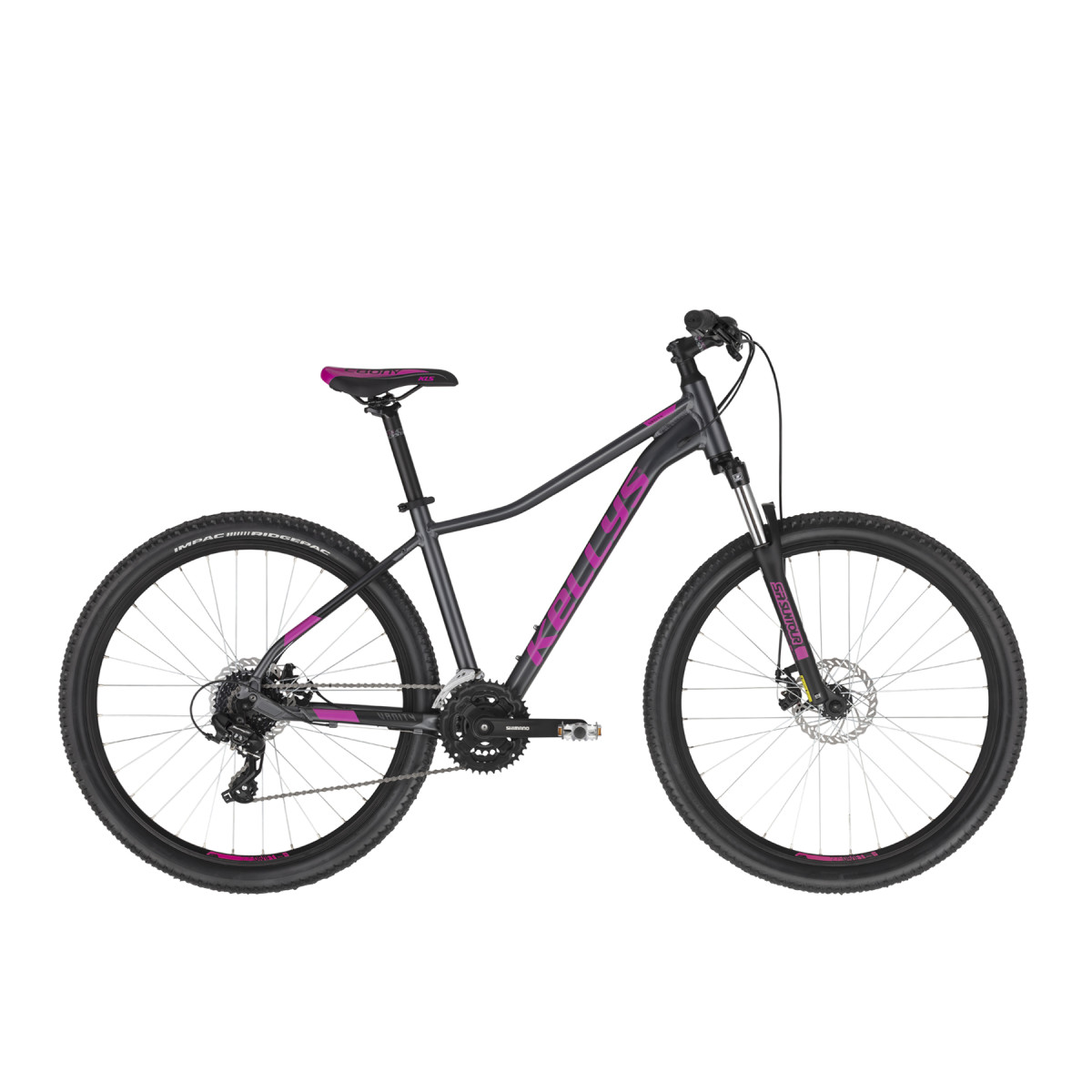 rám KELLYS KLC 26 - Lady Sport Geometryvidlica SR SUNTOUR XCE28 DS (26), 100 mm, coil springkľuky SHIMANO TY301 (42x34x24T) - dĺžka 170 mmmenič SHIMANO TX800 (direct mount)prešmykač SHIMANO TY600 (34.9 mm)radenie SHIMANO ST-EF500-8 EZ-fire Pluspočet prevodov 24kazetový pastorok SHIMANO CS-HG200-8 (12-32T)reťaz KMC Z8brzdy Mechanical Discbrzdové páky SHIMANO ST-EF500-8 EZ-fire Plusbrzdové kotúče predný 160 mm / zadný 160 mmnáboje KLS Firework Disc (32 dier)ráfiky KLS Draft Disc 559x21 (32 dier)výplet steelplášte IMPAC Ridgepac alebo WTB Nano 54-559 (26x2.10)hlavové zloženie semi-integratedstred.zloženie cartridge (122 mm)predstavec KLS Active - diam 28.6 mm / bar bore 31.8 mm / 8° / dĺžka 75 mmriadidlá KLS Active RiseBar - diam 31.8 mm / rise 18 mm / šírka 620 mm (XS), 660 mm (S)rukoväte KLS Advancersedlovka KLS Active - diam 30.9 mm / dĺžka 350 mmsedlo KLS Ebony Womenpedále alloyveľkosť rámu XS / S