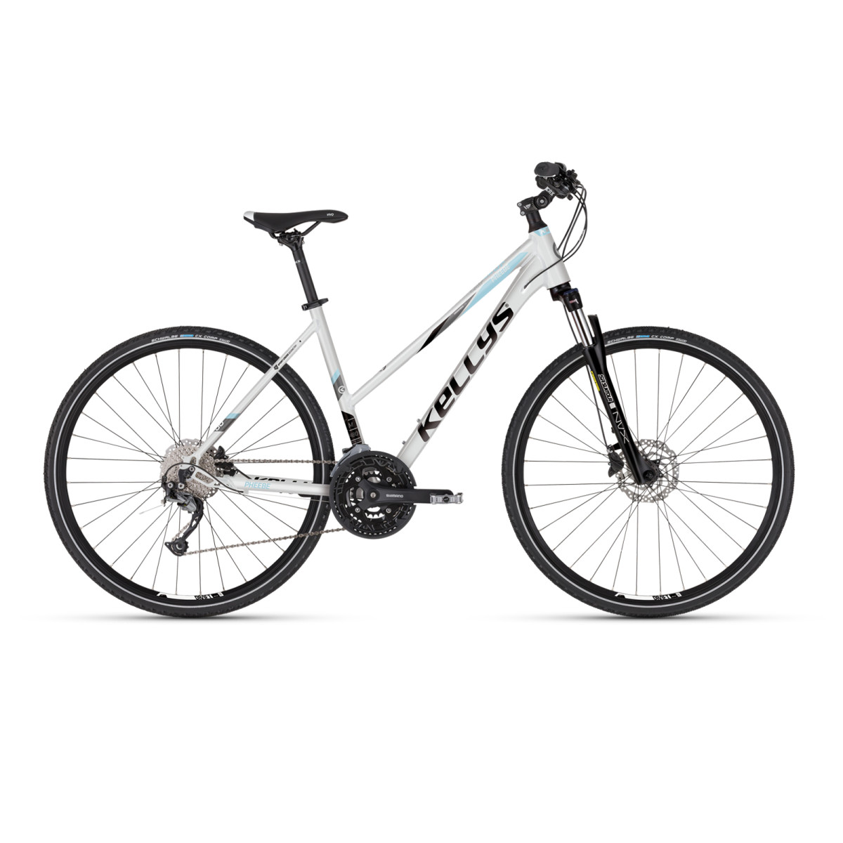 rám KELLYS Crossforce Lady Lite - tapered HT, internal routing, integrated kickstand mountvidlica SR SUNTOUR NVX30 NLO DS, 80 mm, coil / Speed Lockoutkľuky SHIMANO Acera T3010 (48x36x26T) - dĺžka 170 mm (S), 175 mm (M)menič SHIMANO Alivio M4000 (direct mount)prešmykač SHIMANO Acera T3000 (31.8 mm)radenie SHIMANO Alivio SL-M4000 Rapidfire Pluspočet prevodov 27kazetový pastorok SHIMANO CS-HG300-9 (11-34T)reťaz KMC X9brzdy SHIMANO MT200 Hydraulic Disc alebo KLS 1600 Hydraulic Discbrzdové páky SHIMANO BL-MT200 alebo KLS 1600brzdové kotúče predný 160 mm / zadný 160 mmnáboje alloy / SHIMANO TX505 Disc Center Lock (32 dier)ráfiky KLS Draft Disc 622x21 (32 dier / nitované)výplet stainless steel blackplášte MICHELIN Protek Cross 42-622 (700x40C) ReflectiveLinehlavové zloženie semi-integratedstred.zloženie cartridge (124.5 mm)predstavec nastaviteľný KLS CRX 70 - diam 28.6 mm / bar bore 31.8 mm / dĺžka 95 mmriadidlá KLS CRX 70 RiseBar - diam 31.8 mm / rise 25 mm / šírka 640 mmrukoväte KLS Token 2Densitysedlovka KLS Active - diam 27.2 mm / dľžka 350 mmsedlo SELLE ROYAL Vivopedále alloyveľkosť rámu S / M
