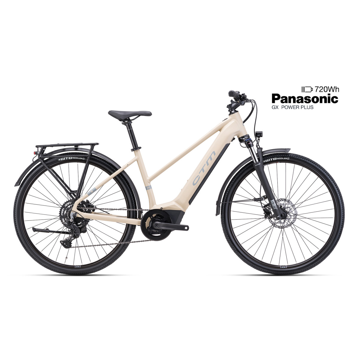 Dámsky crossový elektrobicykel, ktorý je určený na klasickú cykloturistiku, no nezľakne sa ani ľahkého terénu. Pomocnou silou je japonský elektromotor Panasonic GX Power Plus, ktorý je navrhnutý pre optimálny prenos sily pri šliapaní. Poskytuje výkon 250W a krútiaci moment až 75Nm. Dostatočnú zásobu energie na dlhé výlety zabezpečí batéria s článkami LG, ktorá má kapacitu 720Wh a je plne integrovaná v ráme bicykla. Úplne dobitie dosiahne už za cca. 5-6 hodín. Tento systém poskytuje dojazd 60-140km - podľa zvoleného stupňa podpory. V teréne nárazy stlmí odpružená vidlica Suntour XCM32, o bezpečnosť sa starajú hydraulické brzdy Shimano MT200 a so všetkými druhmi nerovností si poradia odolné kolesá WTB STi23 s plášťami WTB Riddler. Súčasťou výbavy je kompletné osvetlenie napájané z batérie a ovládané priamo z riadidiel, integrované blatníky, zadný minimalistický nosič a kompaktný stojan.
