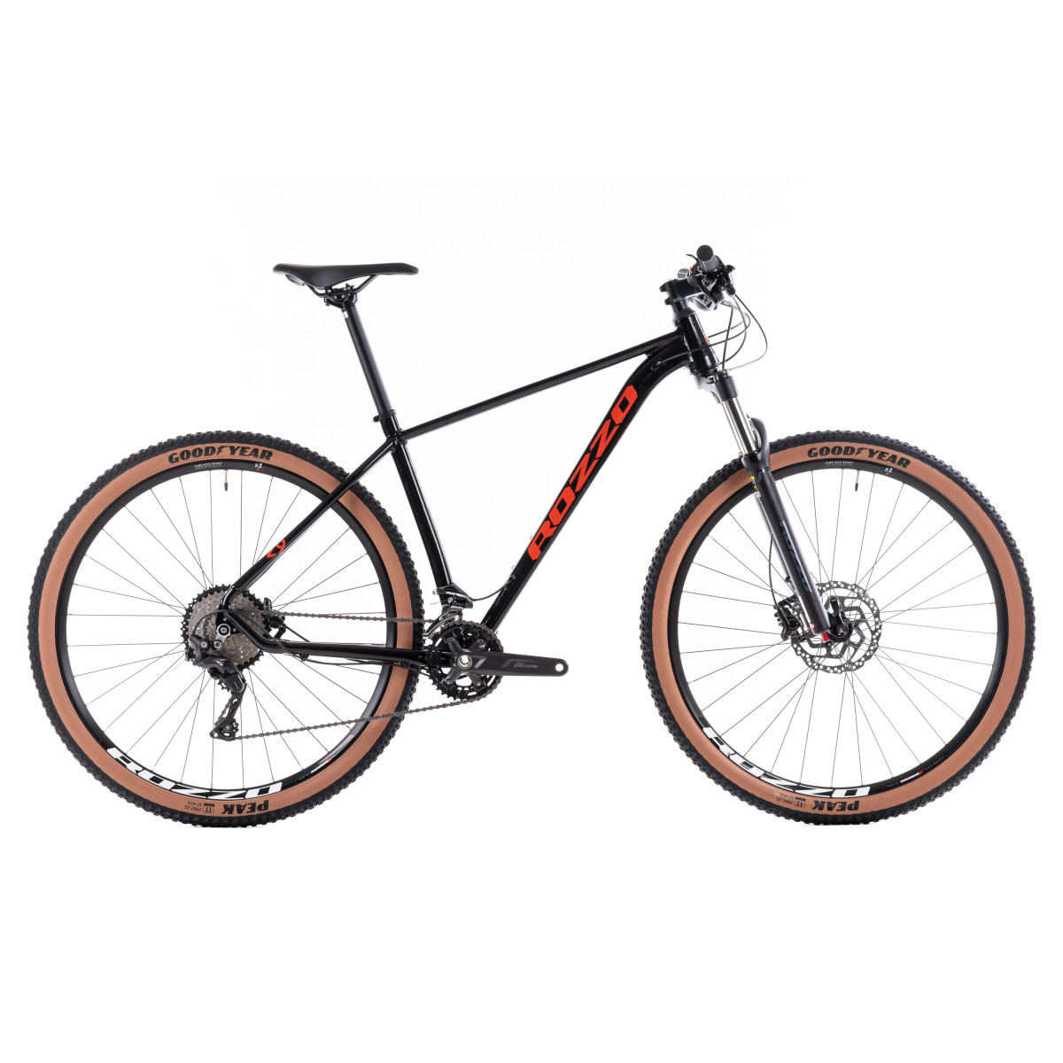 Rám: Rozzo Boost Double Butted 6061 Alu 12x148mm Vidlice: Zoom 868 Air boost 15x110mm, RL/O zamykání ze řidítek Systém tlumení: Vzduch/olej Hlavové složení: Neco H156EMP tapered Přehazovačka: Shimano XT RD-M8000 GS 11rychl. Řazení: Shimano Deore SL-M5100 11rychl. Přesmykač: Shimano SLX FD-M7020 2x11rychl. Brzdy: Shimano Deore BR-MT500 Kotouče: Shimano SM-RT10 180/160mm Kliky: Shimano Deore FC-M5100 36/26 11rychl. Středové ložení: Shimano SM-BB52 BSA Řidítka: Rozzo AL-312BT, 720mm 9°, rise 12mm Představec: Rozzo TDS-D479 rise +7° Sedlovka: Rozzo SP-C255 30.9/350mm, offset 15mm Sedlo: Rozzo D2375 Řetěz: Shimano Cues CN-LG500 11rycl. Kazeta: S-Ride CS-M400 11-42 11rychl. Špice: Sapim Leader Inox 14G Ráfky: Rozzo RX 2027 622x27 Tubeless ready Náboje: Shimano FH-MT400 12x148mm / Shimano HB-MT400 15x110mm Pláště: GoodYear Peak Premium TT 29x2.25 Hmotnost: 13,4kg (velikost 19")
