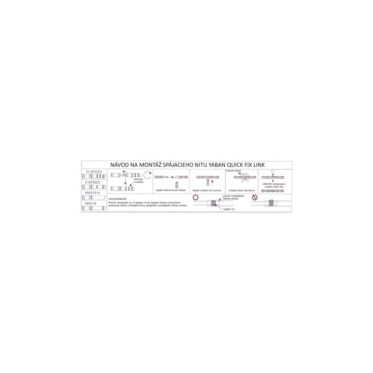 1. Na každom spájacom nite Yaban Quick Fix link sú krajné plôšky nitu v mierne klinovitom tvare, aby sa pri znitovaní reťaze bočné platničky spájaných článkov reťaze pritiahli k sebe. Tento klinovitý tvar dokáže zvýšiť silu spájaného nitu na úroveň ostatných fabrických nitov.