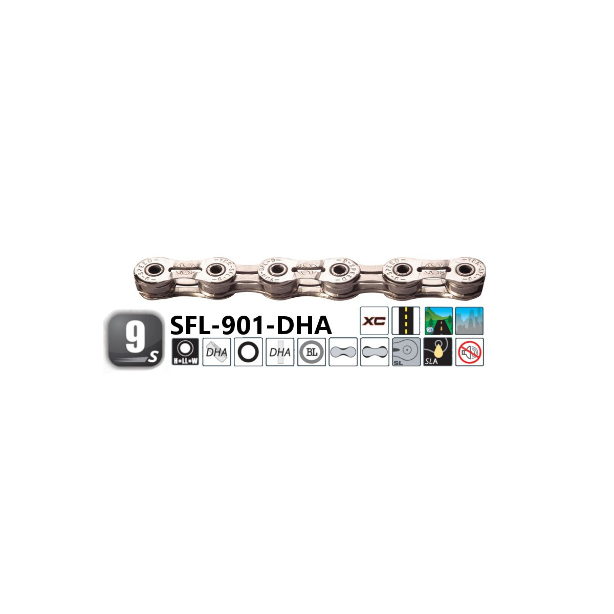 - SLA Superior Lubricating Aid - nižšie trenie za pomoci vrstvy Ni-PTFE Teflon; špeciálny materiál pre predĺženie životnosti reťaze o 100%