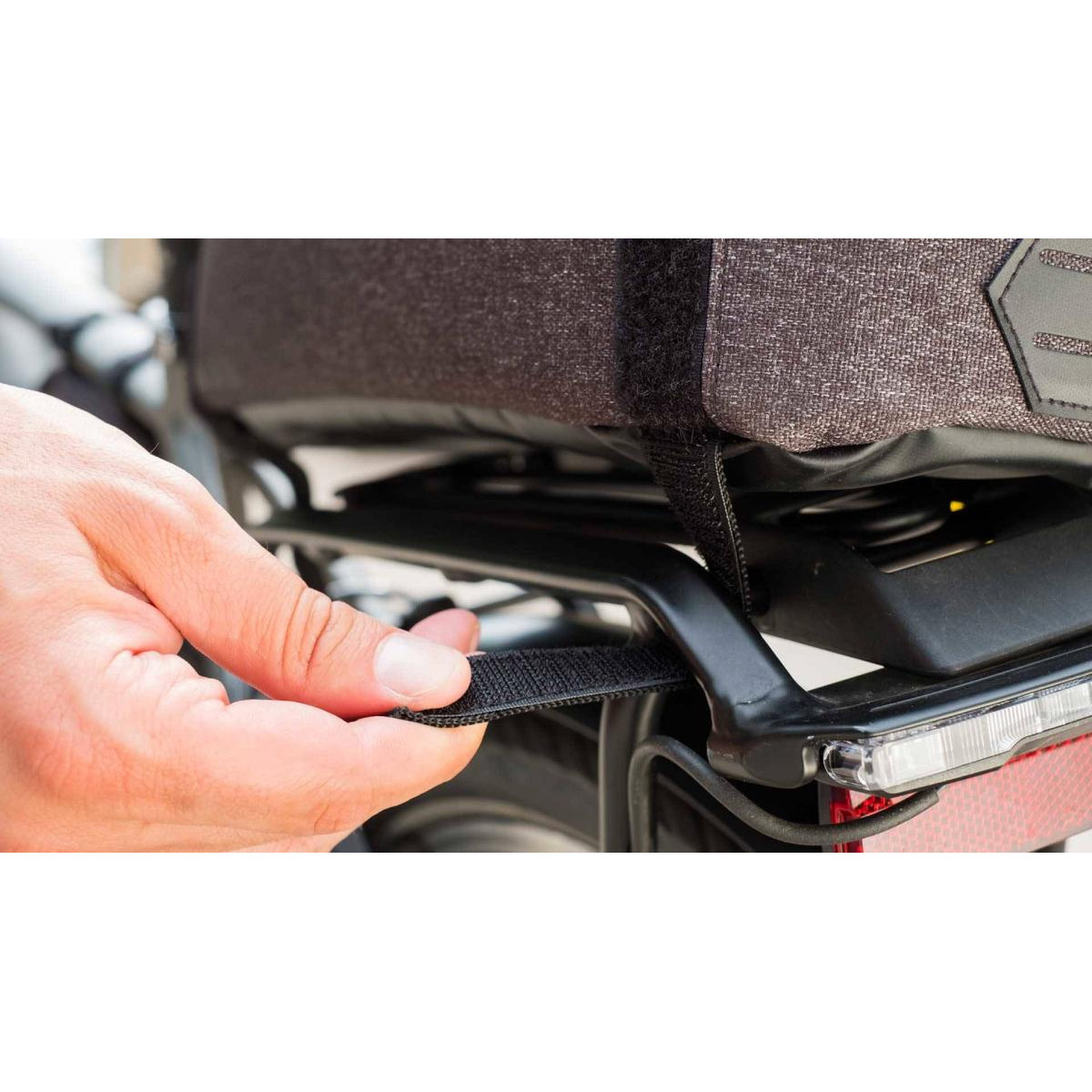 Veľký úložný priestor s vnútornou vložkou z ochrannej peny Zadné pútko na zadné LED svetlo 4 remienky na suchý zips na zaistenie vaku o nosič, zamedzujú pohybu kapsy dopredu alebo do strán Nastaviteľný a odnímateľný popruh na plece Kompatibilná s návlekom RainCover (BSB-97, ako ochrana pred dažďom a špinou Materiál kapsy: Nylón Systém uzatvárania: Zips Typ uchytenia: Suchý zips Jednoduchá montáž/demontáž Objem v cm3: 11500 Rozmery V x Š x D: 160 x 160 x 360 mm Farba: šedá melanž