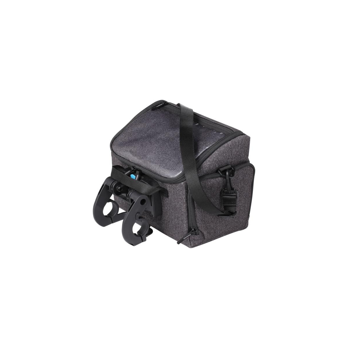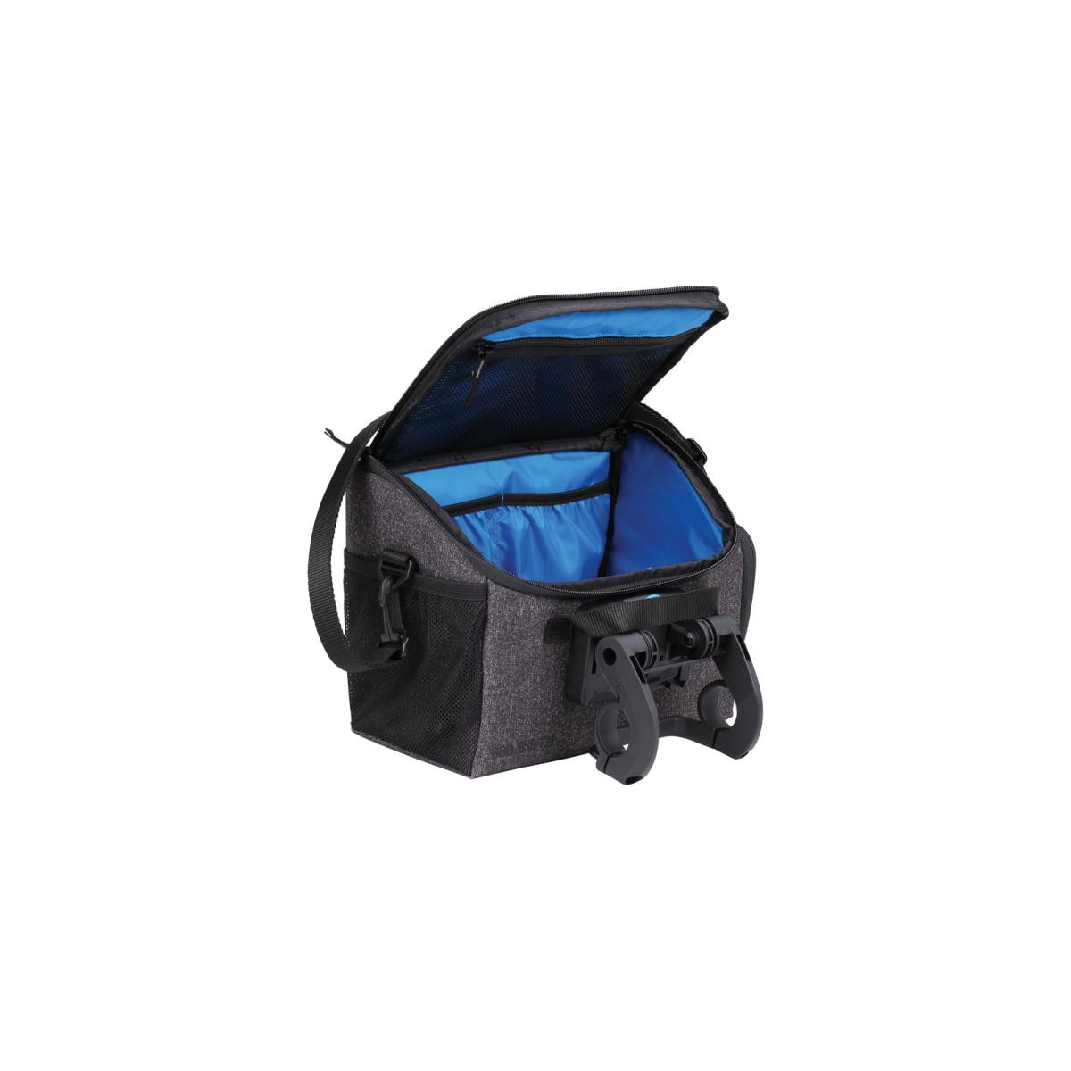 Veľký úložný priestor s vnútornou vložkou z ochrannej peny Pútko na predné LED svetlo Systém pre montáž na riadidlá, vhodný aj pre E-bicykle s jednoduchým systémom odnímania kapsy Nastaviteľný a odnímateľný popruh na plece Kompatibilná s návlekom RainCover (BSB-97, ako ochrana pred dažďom a špinou Materiál kapsy: Nylón Systém uzatvárania: Zips Typ uchytenia: Rýchlo upínanie Jednoduchá montáž/demontáž Objem v cm3: 550 Rozmery V x Š x D: 180 x 260 x 160 mm Farba: šedá melanž