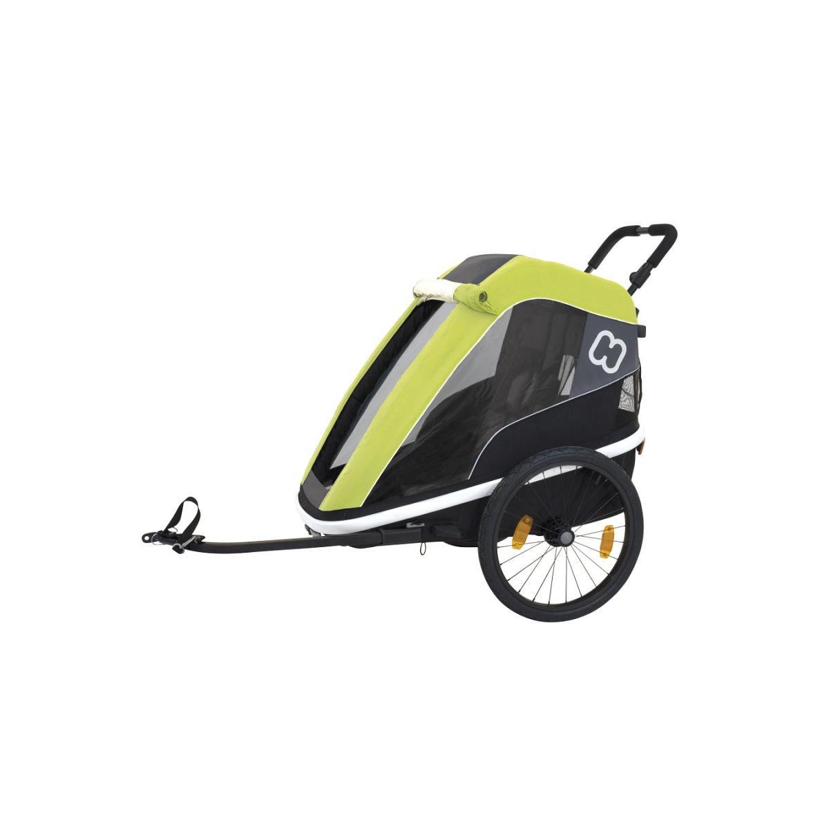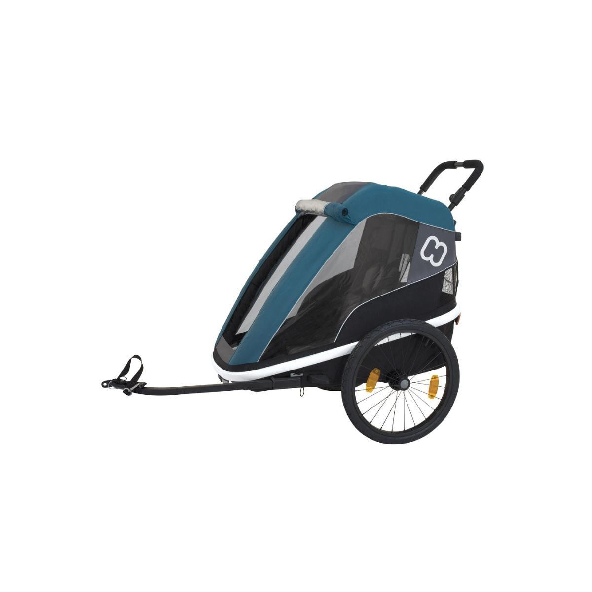 Všestranný detský vozík s odnímateľným ramenom za bicykel, jednomiestnyPohodlný vďaka odpruženiu.Vďaka prednému kočíkovému koliesku, ktoré je súčasťou, môžete vozík odpojiť a používať ho aj ako otvorený športový kočíkPo jednoduchej demontáži ramena, ktoré je súčasťou balenia, získate plnohodnotný kočík Jednoduché otvorenie pomocou popruhu a háčika