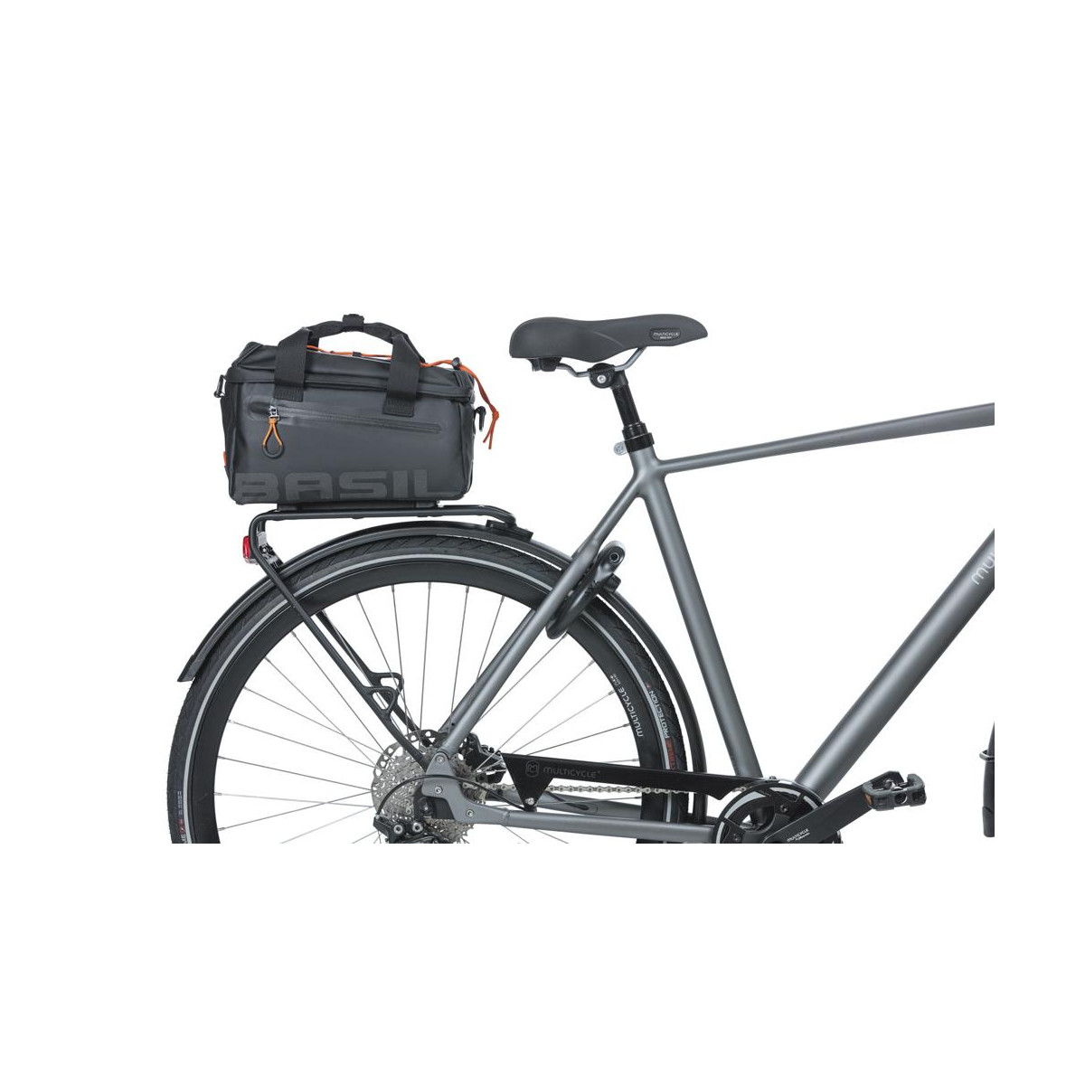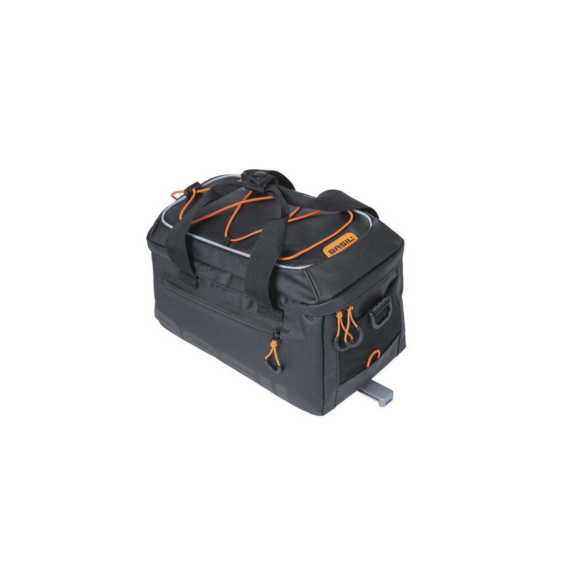 Taška na nosič Basil Miles Tarpaulin je pre skutočných športových nadšencov. Chystáte sa na dovolenku na bicykli alebo len tak von? Potom je táto taška určená práve pre vás! Vyrobené z pevnej nepremokavej látky, je neuveriteľne multifunkčná. Taška je čiernej farby, no má športové oranžové detaily. Okrem pripevnenia na nosič môžete tašku nosiť pohodlne cez rameno. Má tiež odnímateľný ramenný popruh a pohodlné rukoväte. Taška má celkovú kapacitu 7 litrov, rozdelená do niekoľkých vnútorných priehradiek. Niektoré priehradky sú polstrované, takže môžete nosiť krehké predmety, ako je fotoaparát alebo telefón, a vedieť, že sú chránené. Na vrchu tašky nájdete extra vrecko, do ktorého môžete uložiť napríklad fľašu s vodou alebo kompaktnú pláštenku. Vďaka podlepeným švom a rolovaciemu uzáveru je taška vodeodolná (IPX 3), takže obsah vašej tašky je dokonale chránený. Chlopňa tašky sa uzatvára na zips. Tašku ľahko pripevníte vďaka predmontovanej doske adaptéra MIK. Pomocou tejto dosky MIK jednoducho zacvaknete tašku na bicykel do nosiča batožiny s profilmi MIK alebo do dosky nosiča batožiny MIK. Ak si chcete tašku vziať so sebou mimo bicykla, rovnako jednoducho ju môžete opäť odkliknúť. Adaptérová doska MIK sa hodí na mnohé nosiče, dámske, pánske a elektrobicykle.