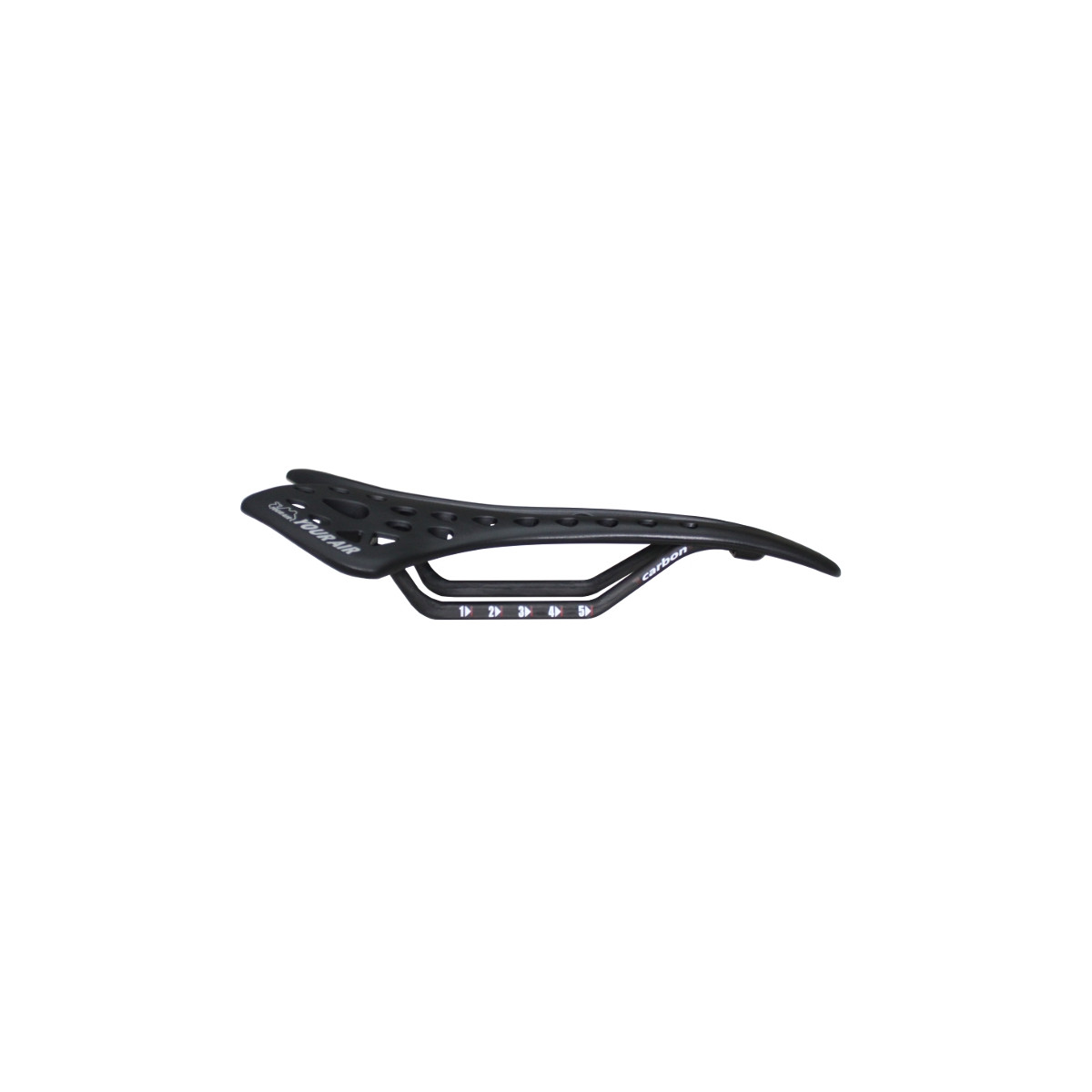 Extra ľahké športové sedlo s karbónovými koľajničkami Patentované riešenie distribúcie odvetrania sedacej plochy: - 24 stupňový sklon vetracích otvorov orientovaných v smere jazdy - unikátny dizajn umožňuje lepšiu cirkuláciu krvi v dôležitých partiách tela a zabraňuje ich odkrveniu a stŕpnutiu Vyrobené z ultraľahkých, zároveň odolných a pevných materiálov. Sedacia plocha disponuje vysokým potenciálom pružnosti. Aj ked je sedlo bez výstelky, vyznačuje sa vysokou mierou jazdného komfortu. Originálne konštrukčné riešenie umožňuje dosiahnuť nízku hmotnosť sedla. Materiál: Nylón Koľajničky: karbónové koľajničky Rozmery: 135 x 277 mm Hmotnosť: 88 g