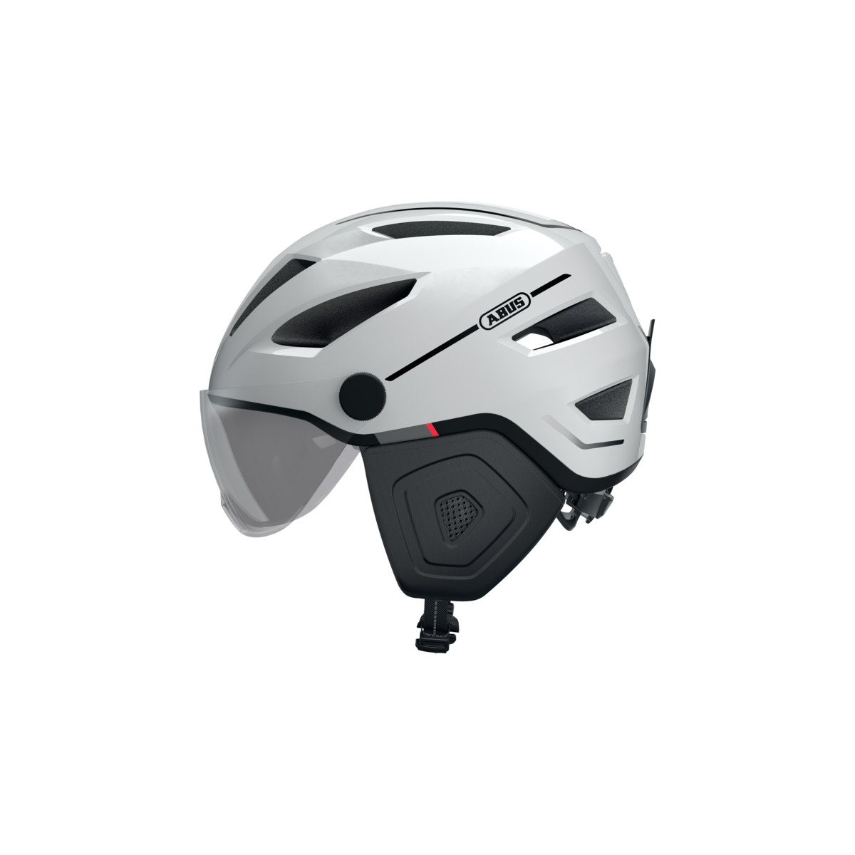 Abus Pedelec 2.0 ACE pearl white M Mestská prilba s integrovanými okuliarmi a pláštenkou