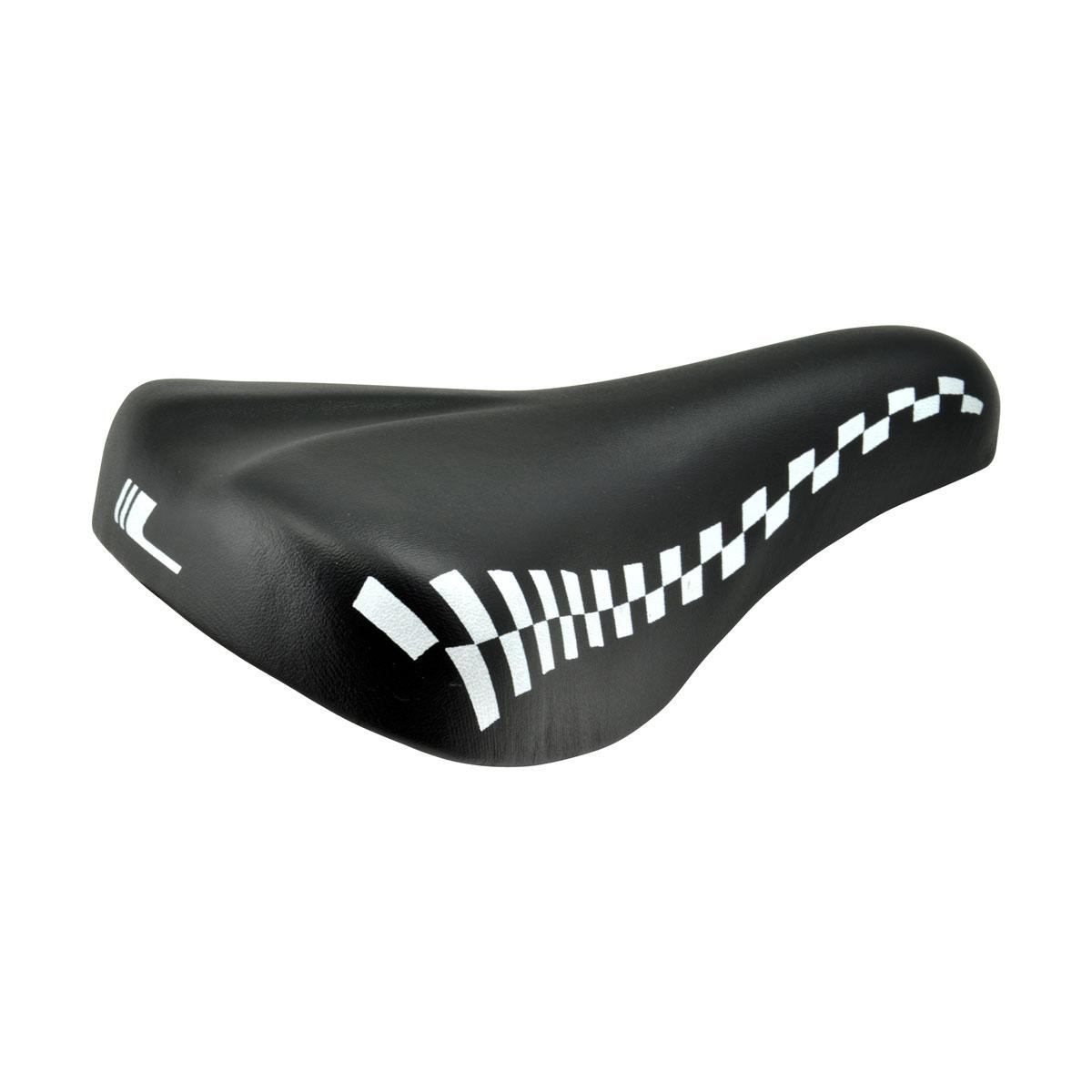 Klasické juniorské MTB sedlo s príjemným a odolným povrchom z Vinylu. Pohodlie zabezpečuje polyuretánová pena vložená medzi kostru sedla a povrchový materiál. Kostra sedla je vyrobená z polypropylénu (PP) do ktorého sú vsadené oceľové koľajničky so zámkom na sedlovku. Rozmer: 240 x 150mm Váha: 472g