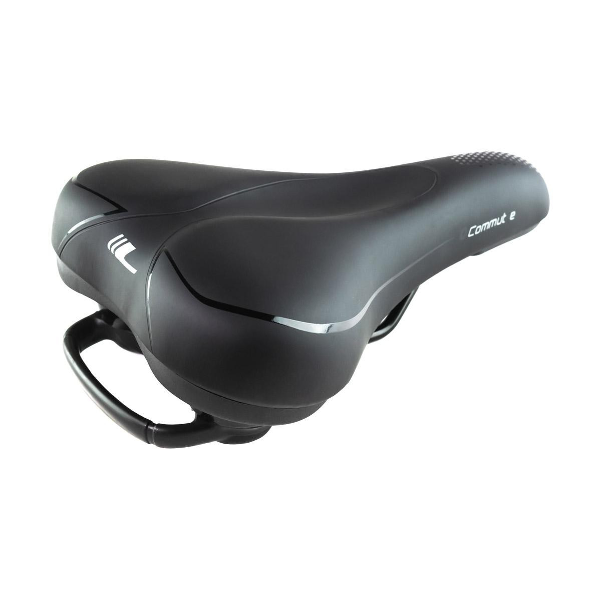 Komfortné sedlo COMUT-E je konštrukčne predurčené pre pohodlnú jazdu v mestských podmienkach a ľahkom teréne. Absolútny komfort zabezpečujú dva nezávislé pružiace systémy. Redukcia nárazového tlaku sedla a absorbcia nárazov sedla na sedacie kosti je zabezpečená umiestnením vrstvy pamäťovej peny, ktorá rozkladá tlak na väčšiu plochu a prispôsobuje sa tvaru tela. Pod ňou umiestnená vrstva peny s vyššou hustotou zabezpečuje tlmenie vibrácií a zvyšuje stabilitu. Znížený stredový pás a stredový otvor redukuje tlak v oblasti medzi sedacími kosťami a zvyšuje odvetranie. Druhý systém je umiestnený pod sedlom, kde väčšinu vibrácií od kolesa zachytí vnútorná vinutá pružina a zostatok vonkajší elastomer. Elastomer prekrýva pružinu, takže sa nemusíte báť zacvikvutia prstov alebo predmetov v pružine. Súčasťou pružiaceho systému je aj madlo, ktoré umožňuje pohodlné ochopenie bicykla. Odolný zvršok zabraňuje pokĺznutiu na sedle počas jazdy. Pevné oceľové koľajničky zvyšujú životnosť sedla. Rozmer 271 x 180mm Odporúčaný sklon pri jade: 90° Váha: 605g