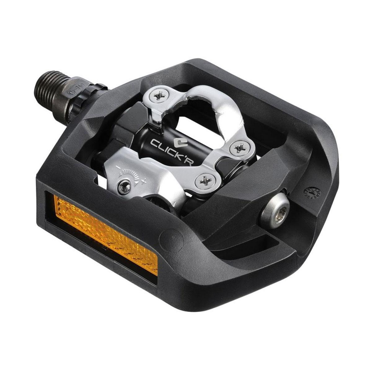 Pedále PD-T421 pre City a treking s klietkou a jednostranným zámkom SPD. Systém SHIMANO CLICK´R umožňuje oveľa ľahšie upnutie a vypnutie zarážky do pedálu. Vhodné pre cyklistov začínajúcich využívať SPD systém na bicykli. Klietka umožňuje použitie klasickej športovej obuvi bez nutnosti upnutia zarážky a súčasťou je aj odrazové sklíčko pre lepšiu viditeľnosť. Nastaviteľná sila zámku pre upnutie a vypnutie zarážky. Dodávané spolu so zarážkami SM-SH56 , pre obojstranné uvoľnenie upnutia. Typ: CTB, Celková váha balenia: 423g, Použitie: Trekking, obojstranné s klietkou, Click-R, čierne, so zarážkami SM-SH56, Materiál: telo pedálu (hliník), oska (chróm+oceľ)