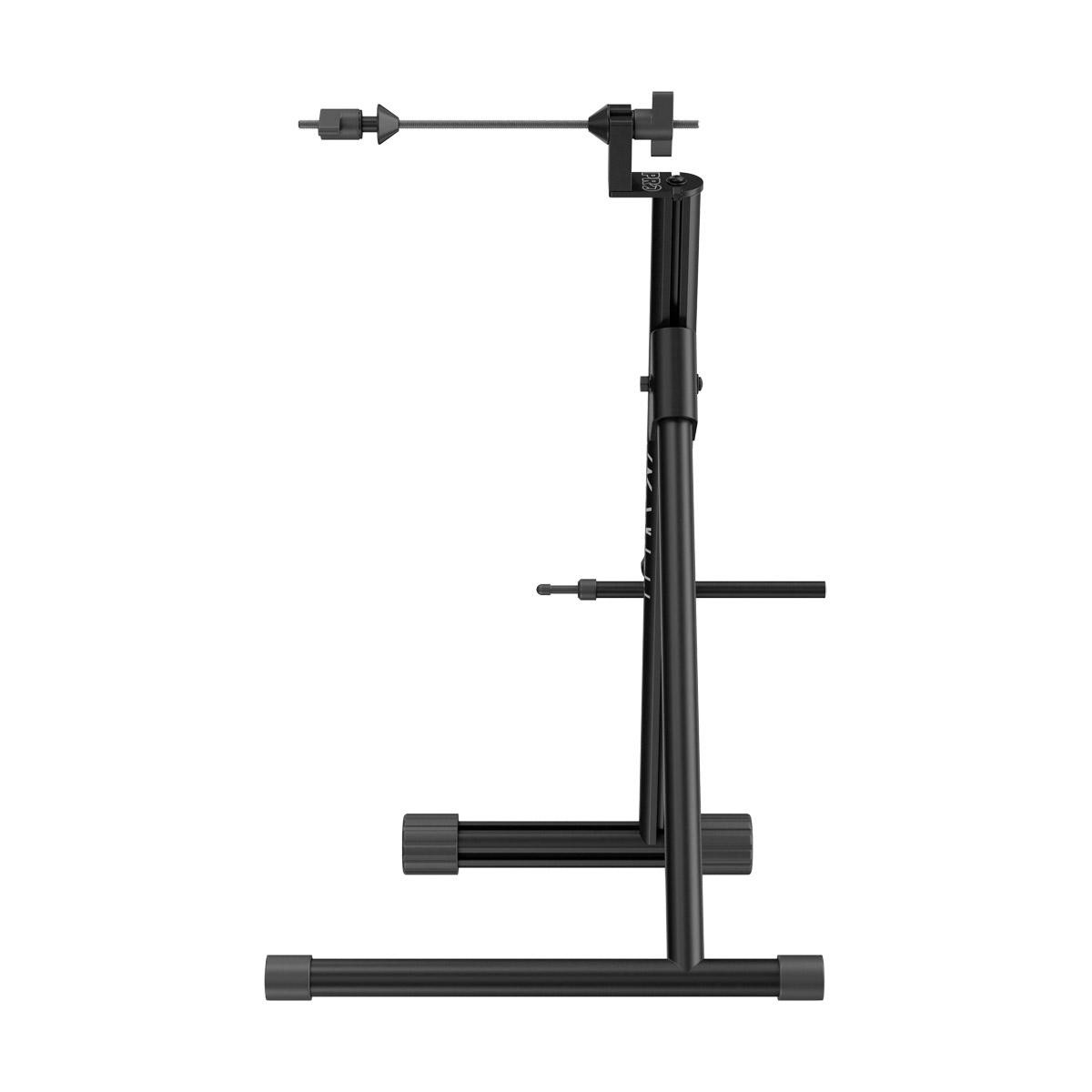 Centrovací stojan pre hobby mechanikov. Kompatibilný so všetkými typmi kolies (QR, E-Thru). Určené aj na kontrolu brzdových kotúčov. Stojan sa dá zložiť pre jednoduché skladovanie. Kontrolný kolík na pružine zabraňuje poškodeniu kolies.