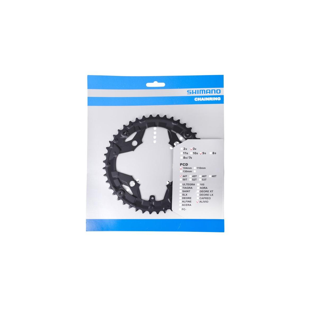 Veľký prevodník ALIVIO 44 zubov pre kľuky FC-T4010. Typ: MTB, Celková váha balenia: 118g, Počet zubov na prevodníku: 44, Prevodníky: 9 rýchlostné, Pre kombináciu prevodníkov: 44/32/22, Počet prevodov: 3x9, Rozteč prevodníkov: 104mm, čierny
